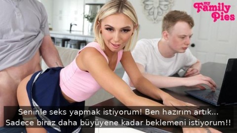Yine bir aile skandalında, bu kez erkek arkadaşının dudaklarının tadına bakarken aslında aklı üvey babasının iri yarağında olan sarışın bir sürtüğün odağındayız. Evinin salonunda cilveleştiği genç adama hoş gülücükler atan genç hatun, sevgilisinin seks yapma isteğini ise ‘’büyüyene dek beklemeliyiz.’’ Bahanesiyle reddeder. Daha sonrasında onunla bilgisayar başında vakit geçiren sürtük, ortama üvey babasının girmesiyle enerjisini tavan yapar. Aralarında sapkın bir ilişki olduğunu hemen anlayabileceğimiz bu ikilinin birbirine karşı tavırları bilgisayar başındaki salak oğlanı umursamaz biçimde gelişir. Sohbeti dolaylı sürdürürken babasına masada domalıp külotunu da kalçasına doğru sıyıran yelloz, sonrasında ise bu olgun adamın arkadan sessizce amına girişine izin verir. Bir zaman sonra film izlerken başını sevgilisinin göğsüne koymasına rağmen ayaklarıyla üvey babasının sikini yoklayan kaltak, cips tazelemeye giden salak çocuğun yokluğunu fırsat bilerek üvey babasının üzerine çıkar. Şehveti ve sulu amcığını aynı anda kullanarak içindeki tüm azgınlığı bu adamın yarağına aktaran sevimli orospu, böylesine özel bir birleşmeden aldığı hazzı sonuna dek belli eder.